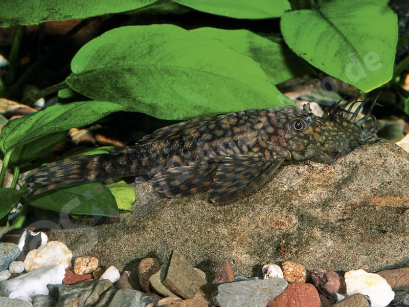 Dieser sehr variable Antennenwels zeigt im natürlichen Lebensraum ein intensives dunkles Netzmuster auf hellbraunem Untergrund, dass im Aquarium leider meist an Intensität verliert. Je nach Fundort ist das Netzmuster unterschiedlich grob gemustert. Es handelt sich um einen mittelgroßen Antennenwels mit recht "normaler" Ausprägung von Tentakeln im männlichen Geschlecht.