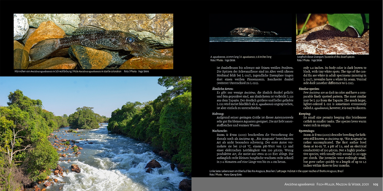 Mit „Antennenwelse: Die Harnischwelse der Gattung Ancistrus“ liegt nun erstmals eine zusammenhängende, zweisprachige Gesamtdarstellung vor. Das Buch bündelt aktuelle wissenschaftliche Daten, langjährige Erfahrungen aus dem Hobby und eine große Zahl bisher unveröffentlichter Fotos aus der Natur und aus Aquarien.