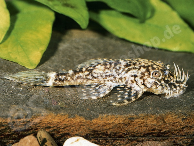 The smallest known Ancistrus of the plains, whose first import caused quite a roar. Aquarium-bred specimens hardly ever grow larger than 2 inches, and develop sexual characteristics at only 1 inch. The species has a relatively wide body and is variably dark brown with irregular light-colored spots. The males of L 352 have standard-shaped tentacles on their head, which start branching as the fish grow older.